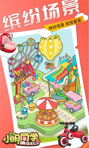 2、全程成长陪伴:用户全程陪伴小明同学从婴儿时期(零岁)一直成长到十八岁甚至更久,随着小明同学年龄的增长,增添游戏的目标感与成就感。