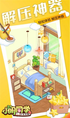 3、房间装修乐趣:在小明同学的每个成长阶段,都会解锁对应年龄的房间供玩家装修。玩家可消耗星星购买装饰品,打造独具个性的房间风格。