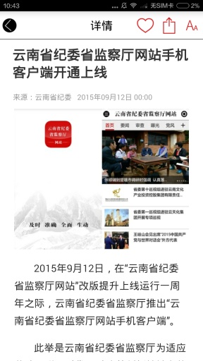 2015年9月12日,在“云南省纪委省监察厅网站”改版提升上线运行一周年之际,云南省纪委省监察厅推出“云南省纪委省监察厅网站手机客户端”。