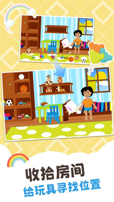 3、常识学习体验:通过可爱的卡通画风和丰富的场景探索,让玩家在玩耍中了解各种各样的生活常识,增加知识储备。