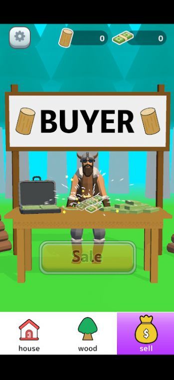 2、通过售卖木材赚取金币,升级伐木工具与设备。
