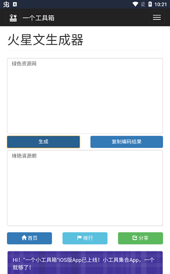 一款优秀的在线火星文生成小工具,若打开工具失败,可退出之后重新打开APP再次运行尝试。