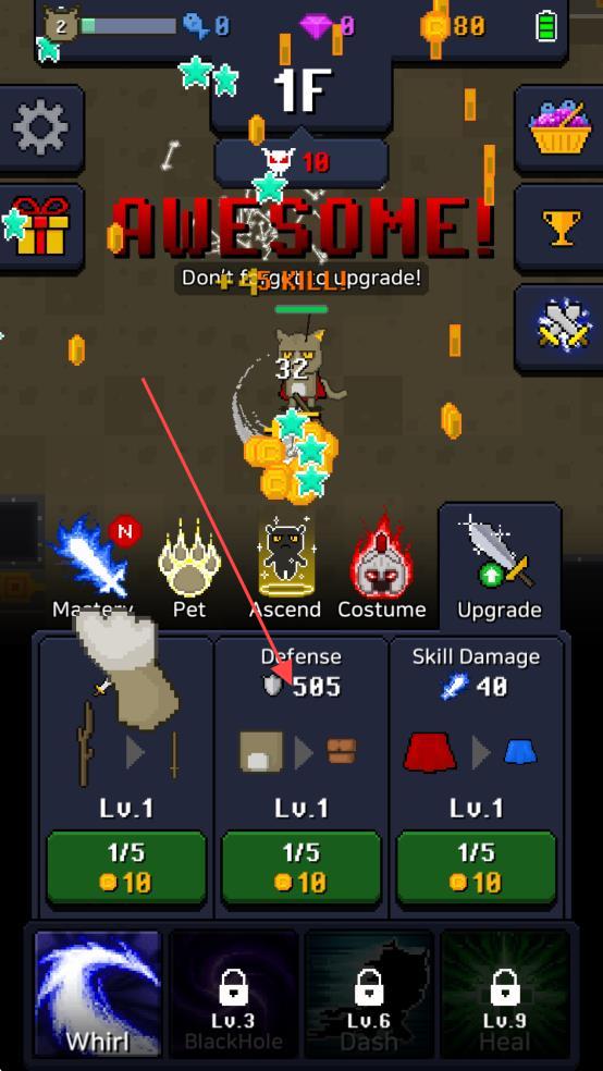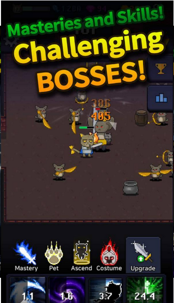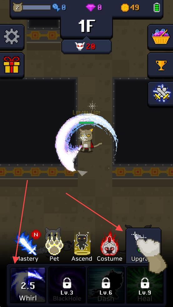 1、关卡挑战闯关:进入不同主题的地牢关卡,躲避陷阱击败怪物首领,收集关卡内的宝物与线索,目标是突破层层阻碍登顶怪猫之塔揭开最终秘密。