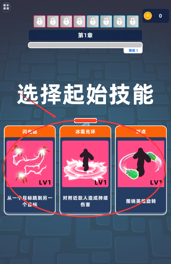1、玩家需要选择起始技能,点击后并迅速开始战斗。