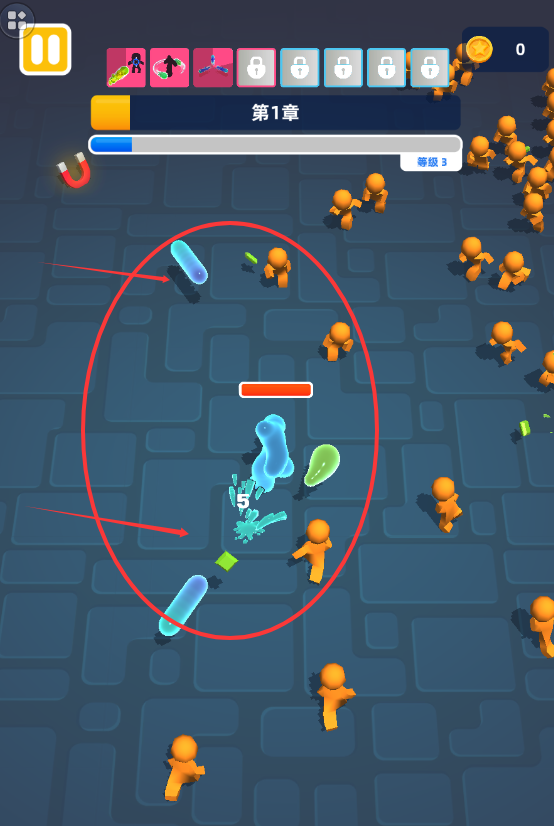 2、注意敌人的围攻,玩家需要灵活移动来发动攻击,能对敌人造成一定的伤害。