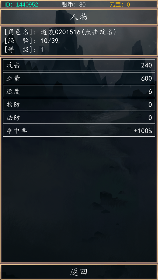 3、点击改名为角色取名,还可以看人物属性。