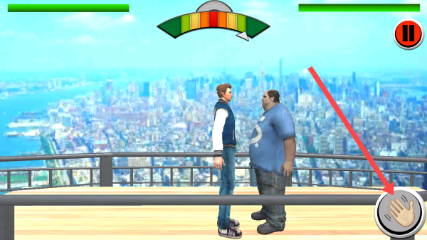 1、基础对战操作入门:点击屏幕任意位置发动普通扇击,长按屏幕右侧蓄力槽提升攻击力,左滑右滑控制角色横向移动躲避对手攻击,首次对战通过动画指引掌握操作节奏。