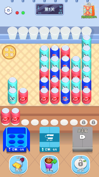 1、订单需求确认:进入关卡后首先查看订单要求,明确所需饮料的包装颜色和数量,作为分类整理的目标。