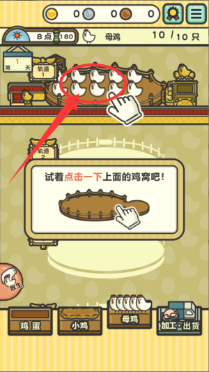 1、进入游戏点击鸡窝,加速母鸡生蛋。