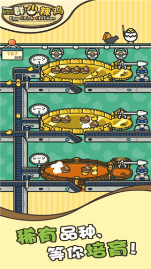 2、品种改良环节,筛选属性优异的小鸡进行特训,达标后参与配种实验,逐步培育出高品质的新品种。