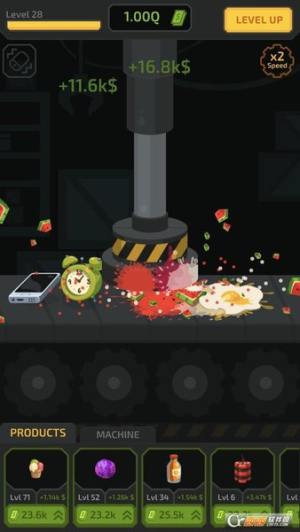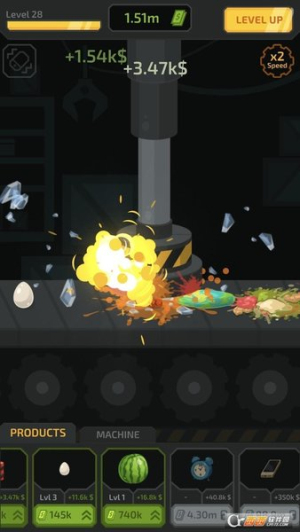 3、金额达到一定程度后可以升级液压机和各种需要压碎的物品来赚取更多的金币。