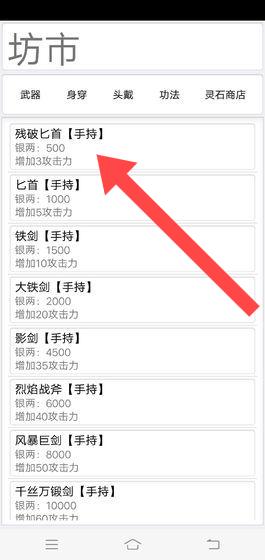 1、点击【箭头处】购买武器。