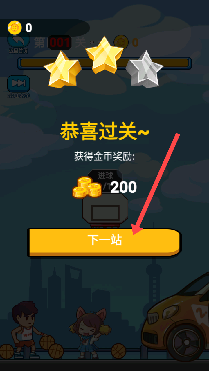 2、趣味视觉反馈设计:Q版篮球与卡通场景搭配夸张进球特效,碰撞障碍物时触发“火花四溅”“金币飞溅”等动态效果,搭配清脆投篮音效增强操作成就感。