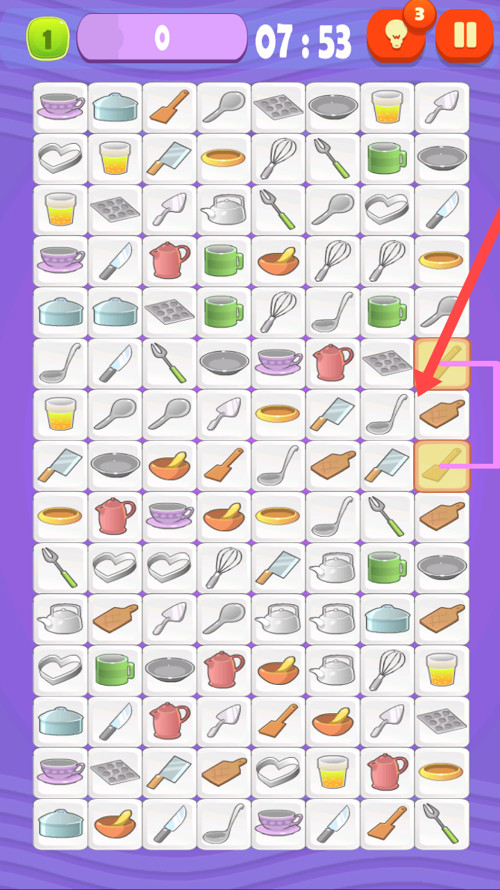 厨具连连看是将经典玩法与厨房元素巧妙融合的休闲佳作,以厨房内锅碗瓢盆等厨具作为消除对象,延续原汁原味的连连看规则,搭配时间限制与奖惩机制,让你在寻找相同厨具进行连接消除的过程中,感受紧张刺激又趣味横生的体验,享受休闲时刻的轻松愉悦。