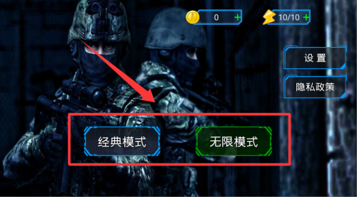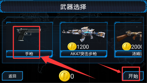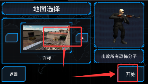 2、选择武器和地图后开始游戏。