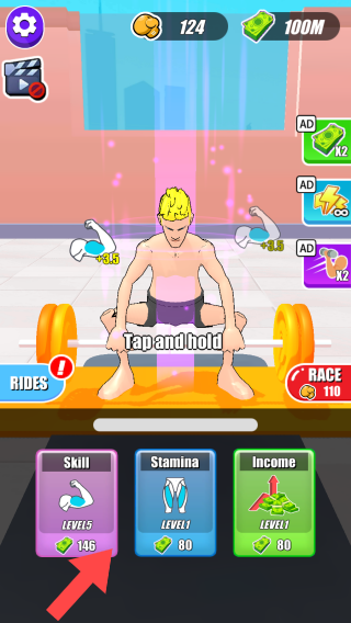 2、资源策略管理:训练消耗体力值可通过补充剂恢复,金币用于升级器械或购买辅助道具,需优先投资高频使用设备,如解锁带坡度调节的跑步机增加训练多样性。