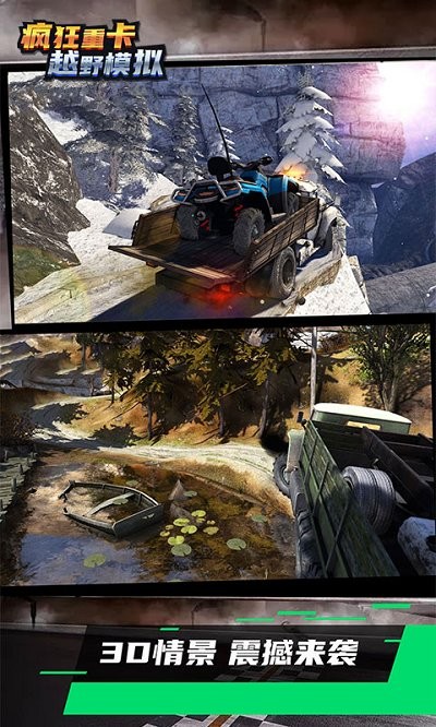 3、深度改装系统:提供丰富的车辆改装选项,升级引擎、强化轮胎、更换涂装,定制专属强悍越野重卡。