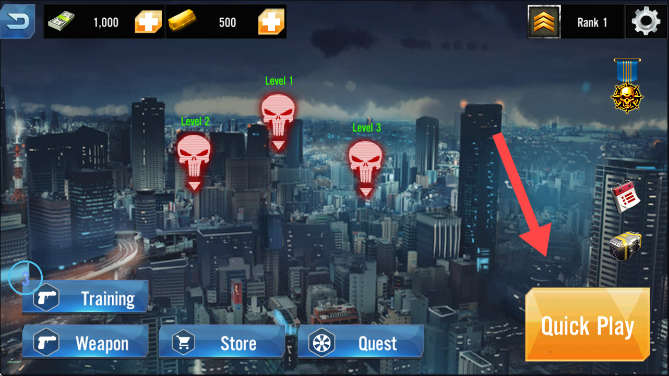 1、点击箭头指的位置开始游戏。