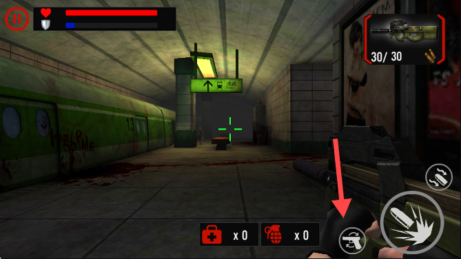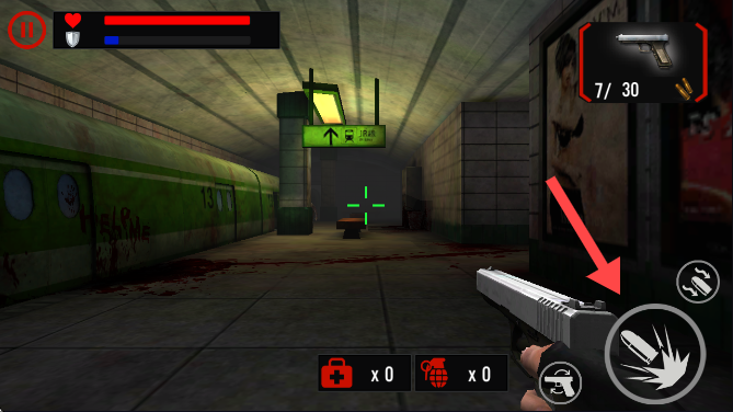 2、点击箭头指的位置发射子弹。