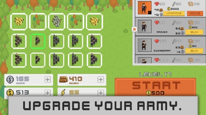 壮大军队是充满了像素rpg风格的策略作品,你将置身其中,还将化身军队的统帅,需要精心规划兵种训练,凭借各兵种独特技能在对战中克敌制胜,丰富多样的挑战内容与关卡地图,等待你深入探索,在不断尝试与冒险中,体验策略对战的无穷魅力。