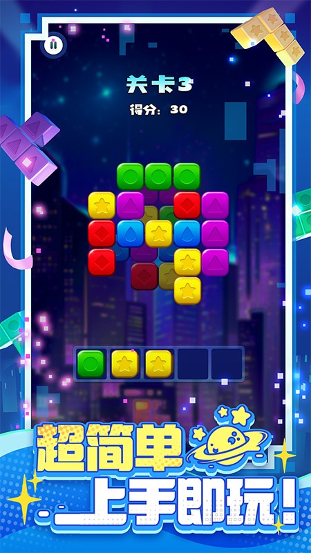 消消之星除方块带来轻松愉悦的消除乐趣,清新明快的画面搭配欢快音效,营造出舒适的闯关氛围,通过滑动屏幕移动方块,填满整行即可完成消除,随着关卡推进还能解锁炸弹等特殊道具,合理运用这些道具能创造连锁消除效果,获得更高分数,游戏支持好友比拼功能,在挑战关卡过程中不断提升消除技巧,创造属于自己的高分记录,体验多重消除快感,随时开启休闲娱乐时光。