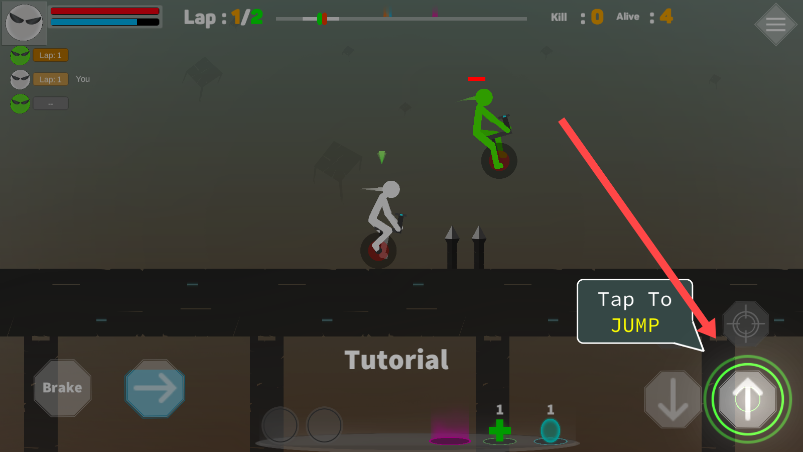 1、点击按钮跳跃障碍。