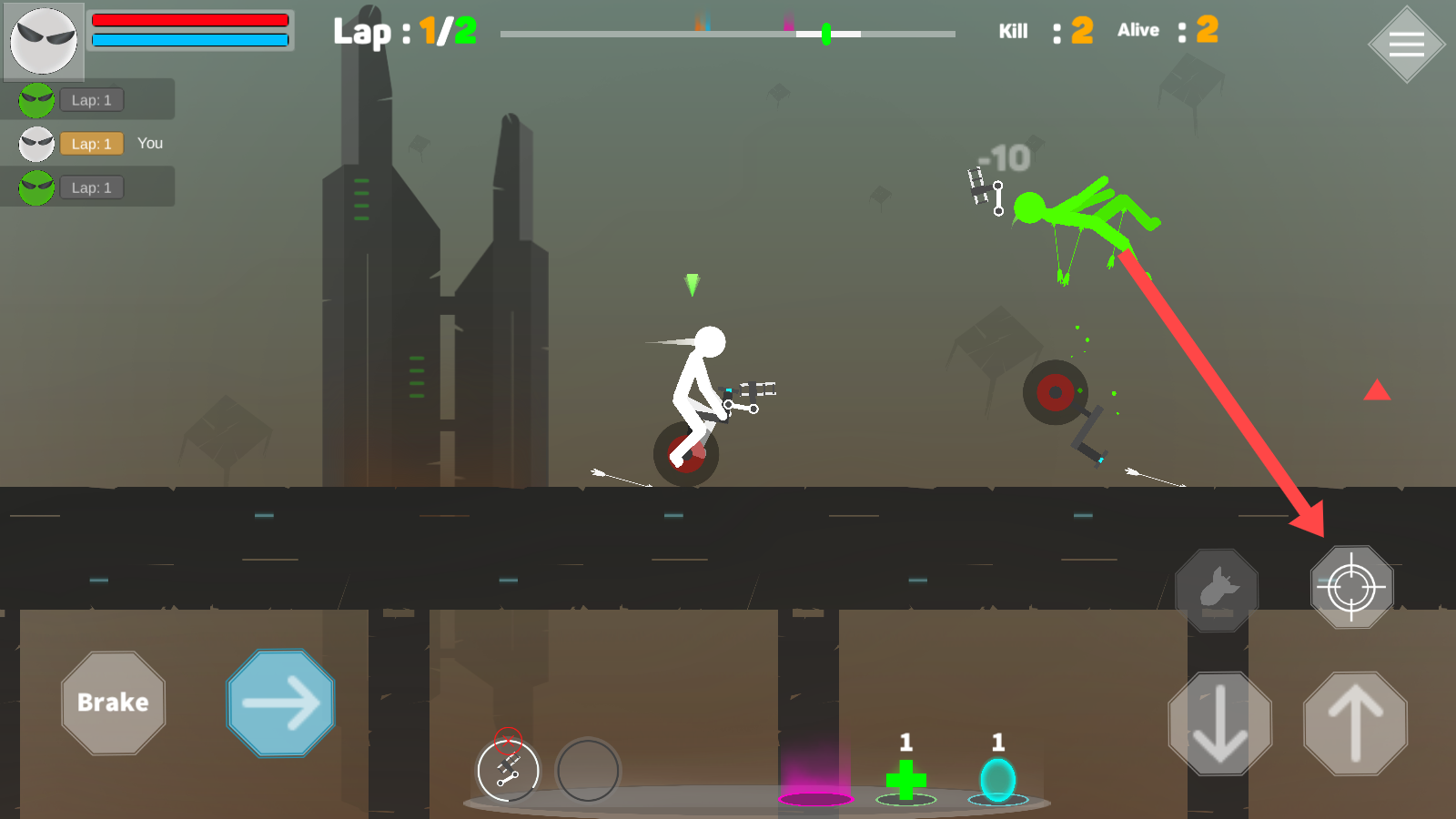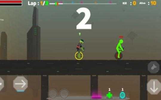 1、操控火柴移动:熟练掌握操作方法,控制骑着独轮车的火柴人在游玩场景中移动,应对各种关卡挑战。