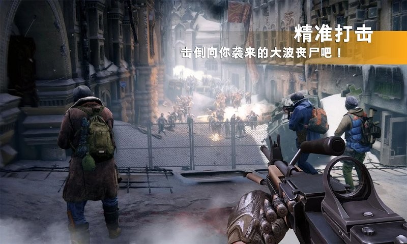 1、精准射击对抗:灵活操控屏幕,精准瞄准丧尸弱点进行射击。在与不同类型丧尸战斗时,根据其特点调整策略,高效击杀敌人。