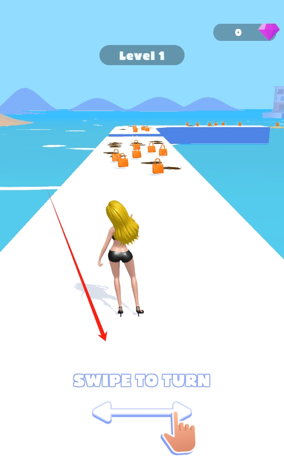 1、操控角色酷走:操控女角色在道路上不断酷走,灵活切换前进方向,适应道路变化和包包位置。