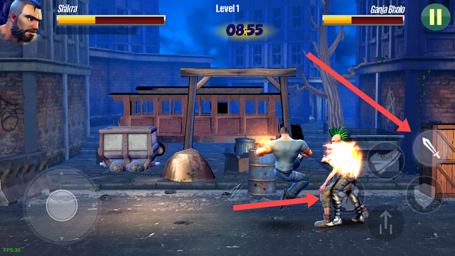 4、街头道具战:自行车链锁可缠绕对手限制行动,捡起的啤酒瓶破碎后能造成持续流血伤害。