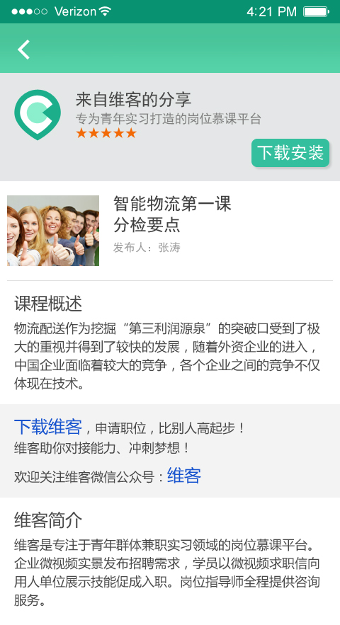 维客对于求职者的市场定位是岗位学习、实践、社交综合网络平台