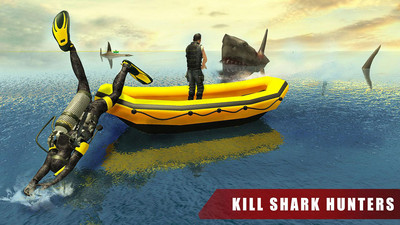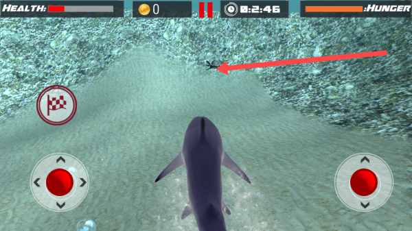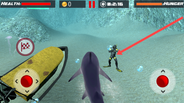 2、在控制鲨鱼游动时要小心人类手上的武器。