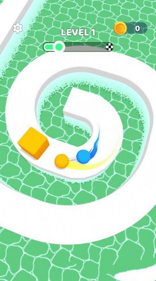 2、操控双球前进:左右滑动屏幕调整双球位置,灵活切换蓝黄两球,控制它们不断向前滑动,跨越重重障碍。