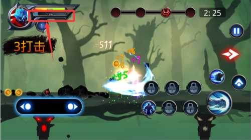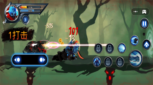 1、通过滑屏操作实现精准位移,长按可蓄力发动特殊冲刺技能。