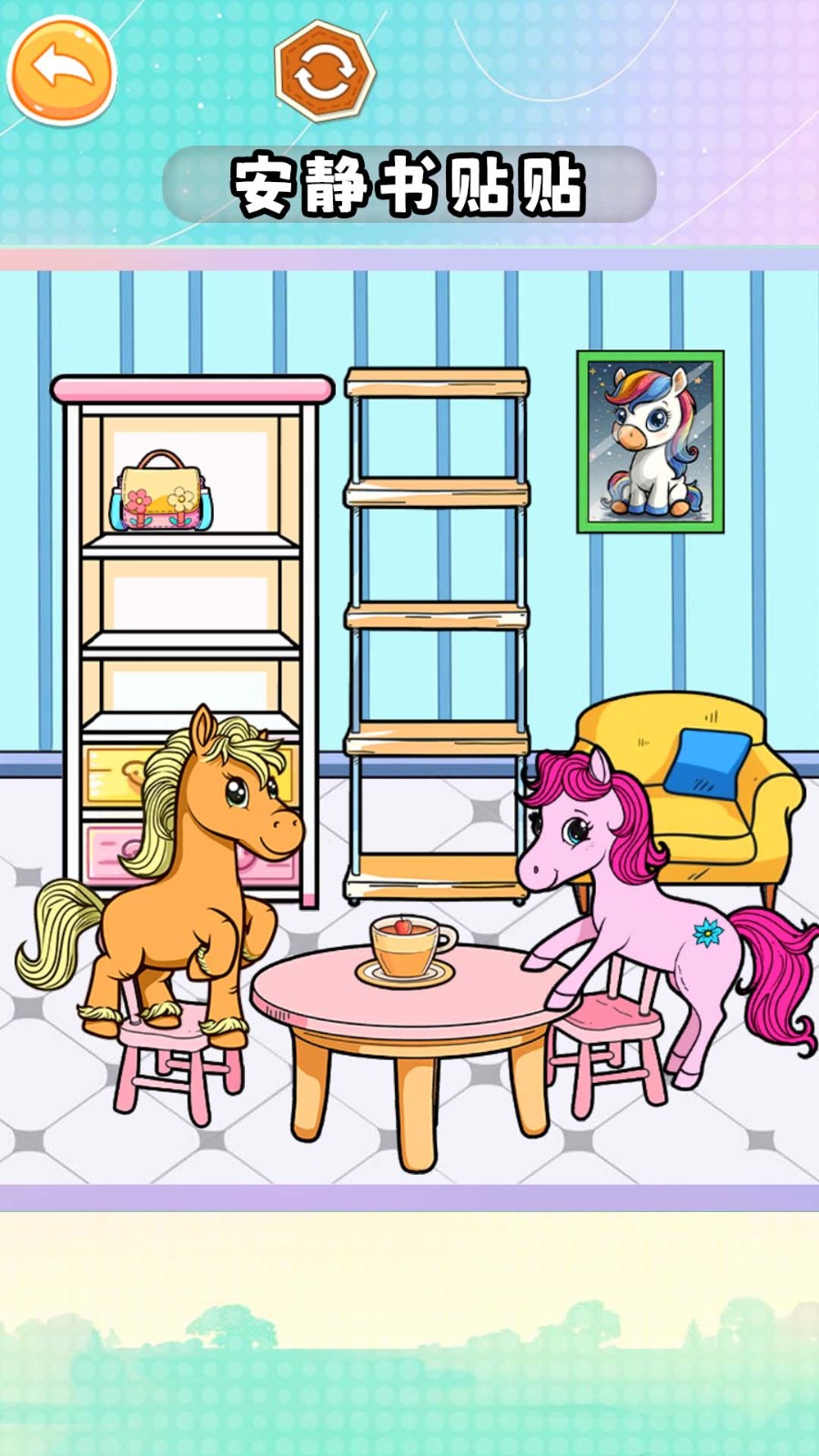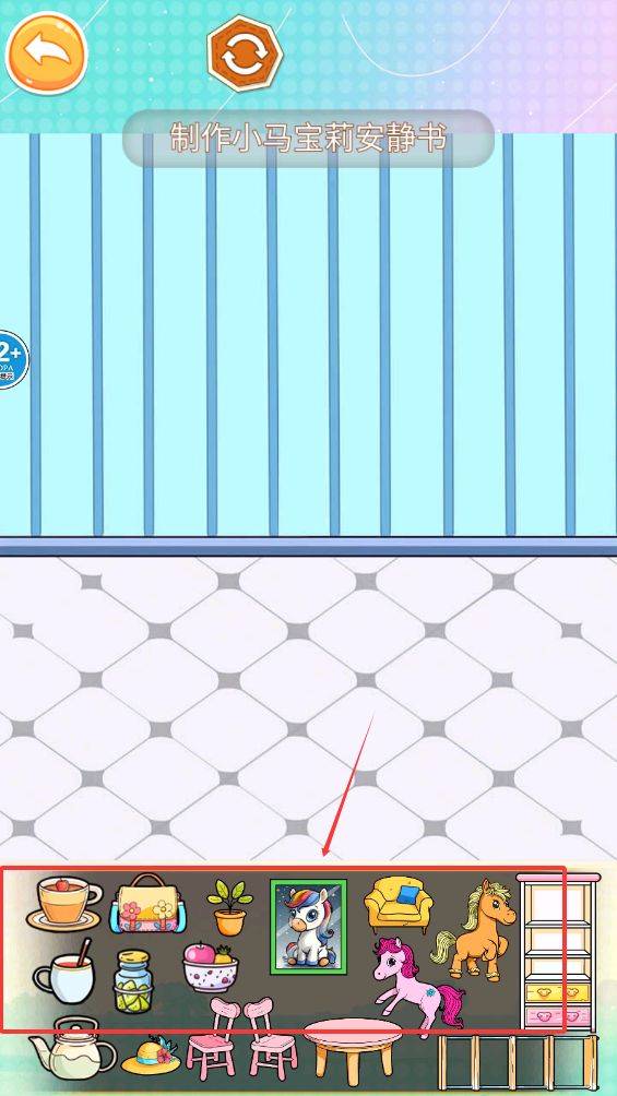 3、选择框内的贴纸,装扮你的安静书吧。
