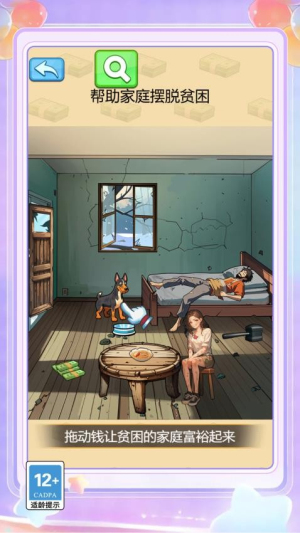 2、帮助人物解决问题,通过解谜和消除,帮助游戏中的人物度过艰难的人生阶段。