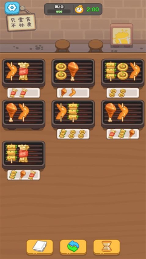 1、开局先观察订单需求,优先烤制要求数量多的食材。这样你的金币就可以用出去跟赚进去了。