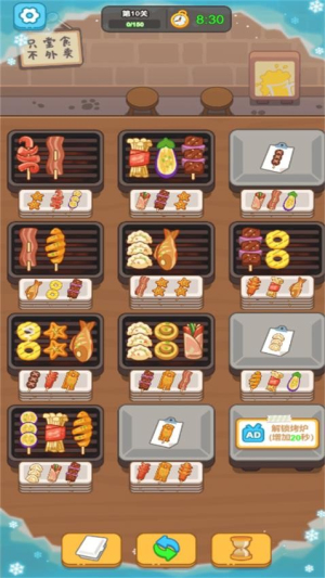 4、美食收集与解锁、通过完成关卡,玩家可以解锁更多美食,丰富烧烤摊的菜单。