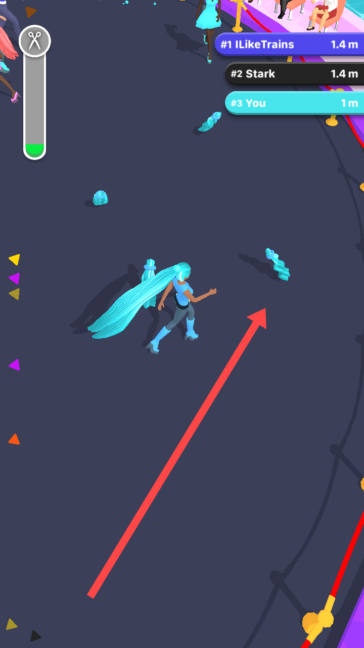 2、进阶策略技巧运用:面对密集剪刀阵时提前预判移动轨迹,利用长发惯性滑行穿越窄道,在“发饰收集区”横向移动最大化获取道具,通过练习提升连击数与通关评分。