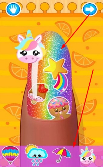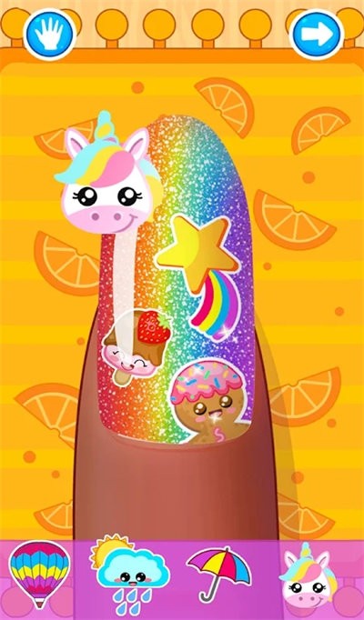 1、互动式美妆体验:触屏操作实现指甲打磨、饰品佩戴等精细动作,长按甲面触发“魔法变色”特效,摇晃设备可随机生成创意配色方案,增强操作沉浸感。