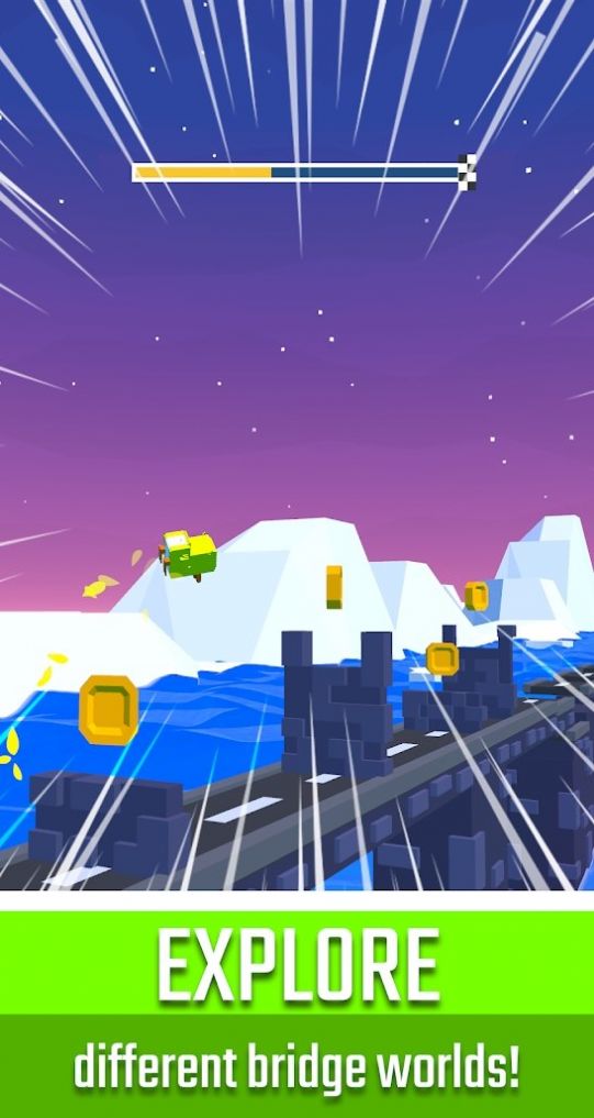 3、丰富关卡持续挑战:包含城市天台、森林吊桥、未来科技桥等主题场景,每关赛道布局与障碍组合随机变化,持续带来新鲜刺激的跑酷体验。
