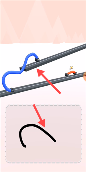 1、手指绘制车辆:在关卡赛道界面,通过手指在屏幕上绘画,设计出各种形状的车辆,为赛车行驶做好准备。