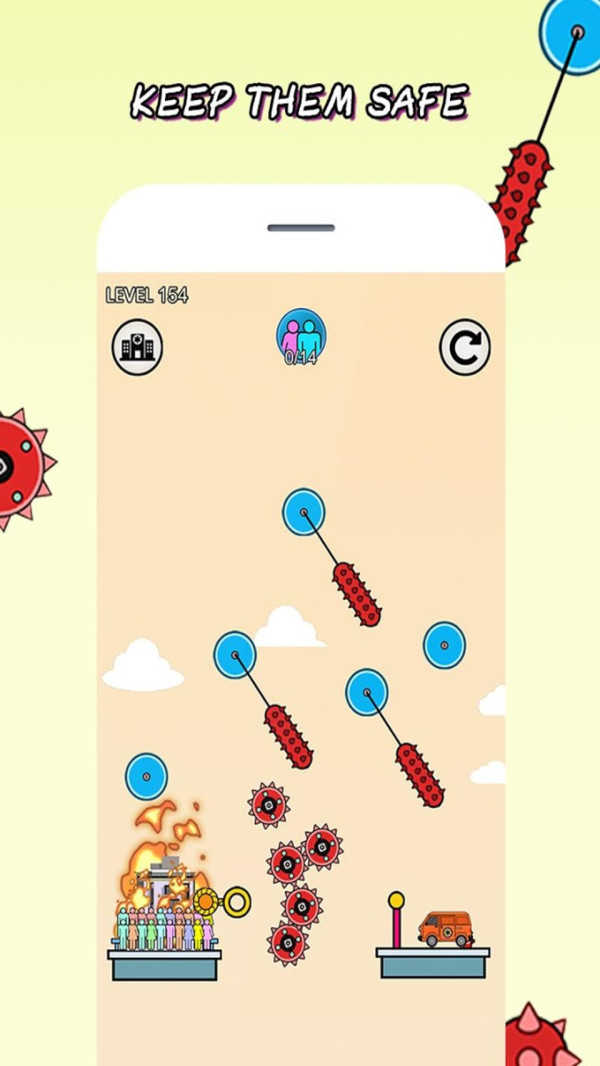 人类救火英雄是一款融合趣味与挑战的益智冒险作品,玩家化身肩负重任的救火先锋,在简约可爱的画面世界里,通过点击滑动屏幕操控救援行动,面对随机出现的特色关卡,破解机关,连接平台,驾驶直升机等工具完成救援任务,体验独特的闯关与竞技乐趣。