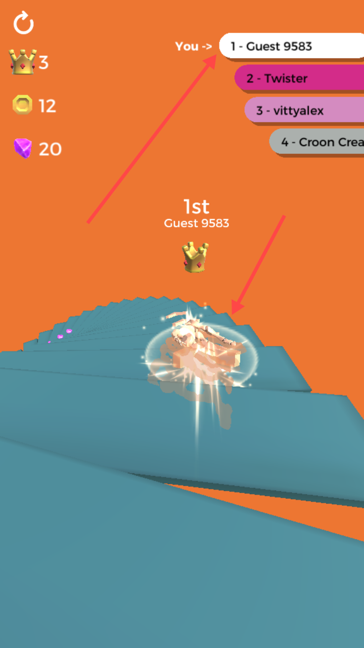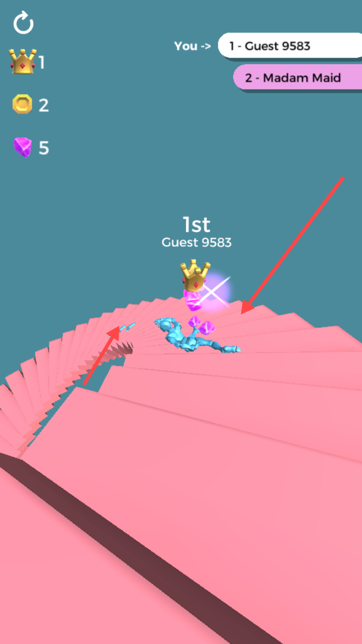 2、震撼视觉冲击:设计多种不同难度的赛道,搭配巨大螺旋楼梯场景,以极具冲击力的视觉效果,增强代入感。