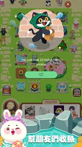 2、自动化系统减负增效:内置“自动收鱼”“自动合成”等便利功能,玩家无需频繁手动操作——池塘中的锦鲤会自动生长,收获后可合成高级料理食材。