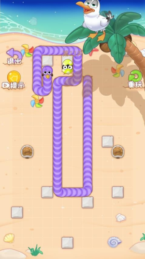 3、灵活的身体变化,虫虫身体长度可随吞噬食物而变化,长大后可攻击小鸟,获取关键机会。