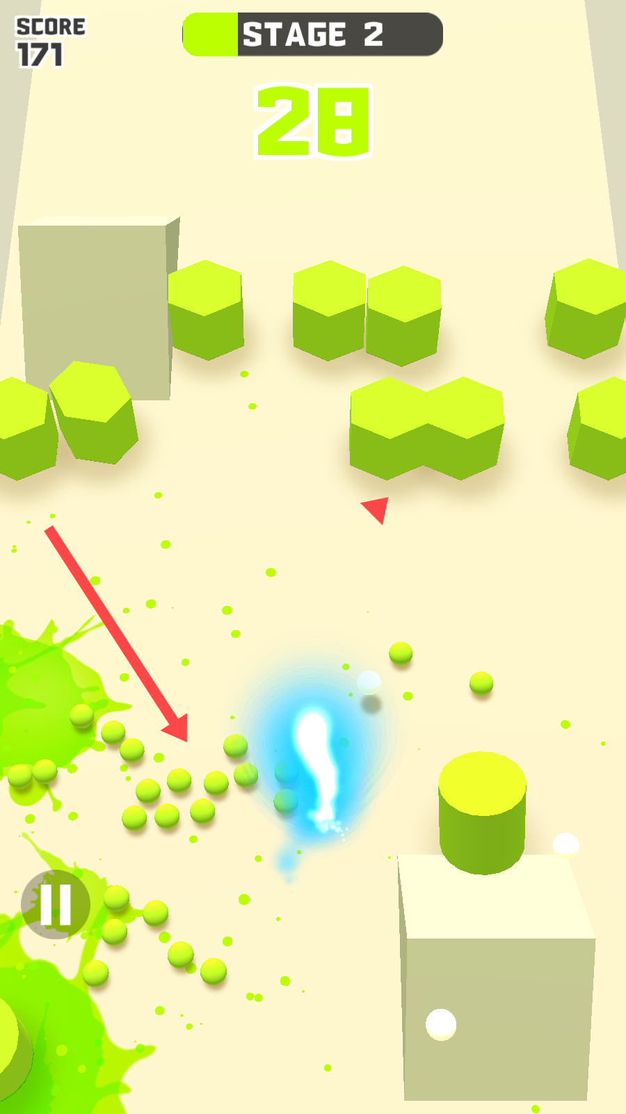 1、控制小球撞击:通过手指滑动屏幕,精准控制小球方向与速度,撞击积木和敌人,突破重重关卡阻碍。