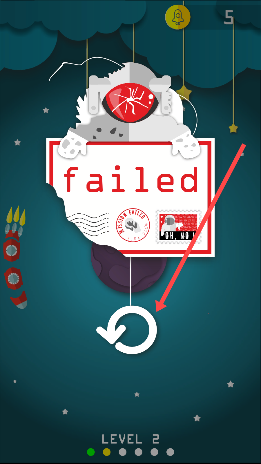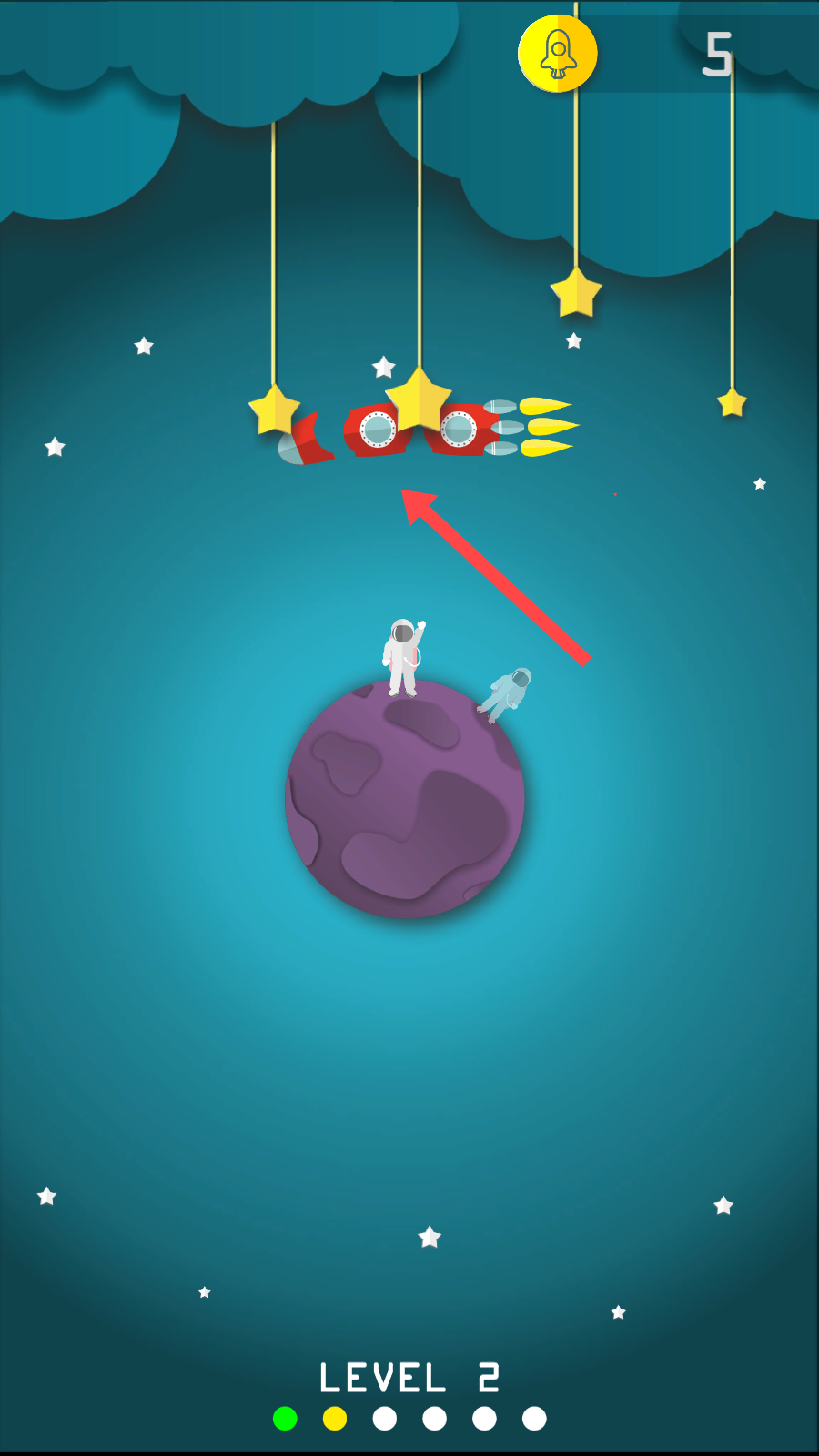 6、点击闯关模式:通过点击屏幕即可让宇航员飞向火箭,简单的操作背后隐藏着丰富的关卡挑战。