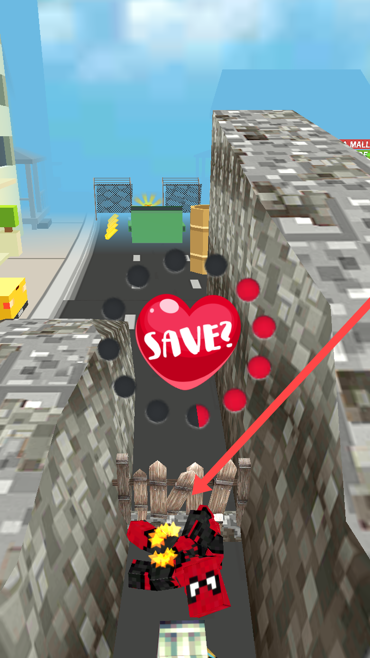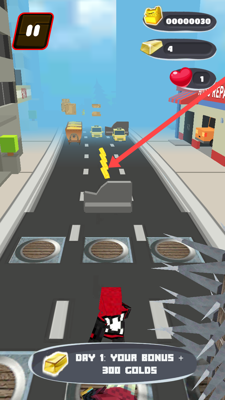 1、控制方向,切换跑道:通过点击虚拟键盘控制蜘蛛侠左右移动切换跑道,根据前方障碍布局,及时调整位置,确保奔跑路线畅通无阻。