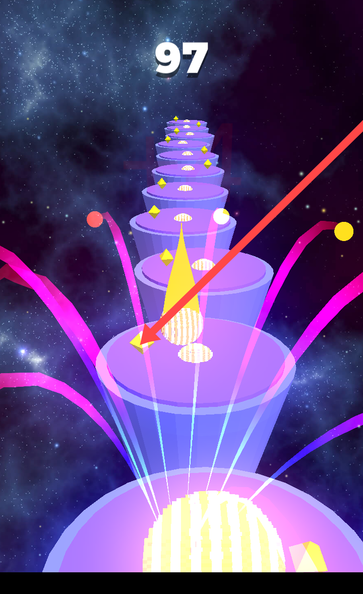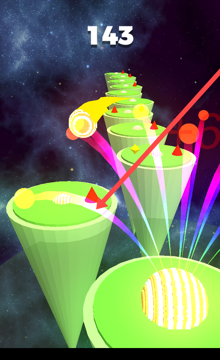 1、节奏操控躲避障碍:根据当前音乐节奏点击屏幕,控制球体移动方向,精准把握节拍,躲避随机出现的障碍物,确保球体沿正确路径前进,避免碰撞或掉落。